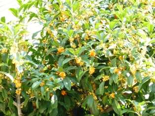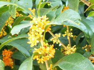 本校の正門から入ってきたところに,2本のキンモクセイの木が植わっています。9月の終わりごろから,キンモクセイの甘い香りがあたり一面に漂っています。その木を見上げると,オレンジ色のかわいらしい花が,今,ちょうど咲き乱れています。