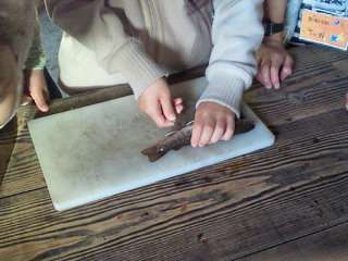 魚をさばくのが難しい!ご覧下さい。悪戦苦闘したようです。できた焼き魚は、さぞかしおいしいことでしょう。苦労したものね。