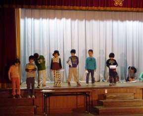 学芸会まで,後,一週間ばかりとなってきました。各学級の練習も,舞台稽古の段階に入っています。今週からは,講堂の暗幕も付け終わり,照明も使った練習に入り,少ずつ熱が入ってきています。