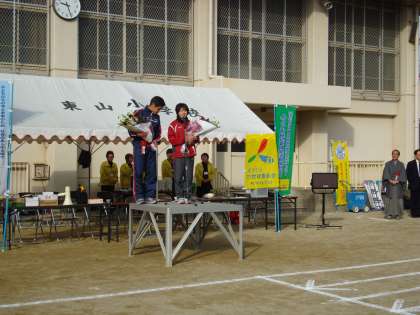 11月29日日曜日、東山小学校のグランドで「東山ふれあいリレーマラソン」が行われました。開会式には、門川京都市長も来られて激励されたり、また女子マラソンで活躍される野口みずきさんと広瀬コーチも来られ、みんなの伴走をしてくださったりと華やかなイベントです。