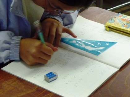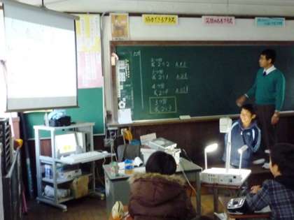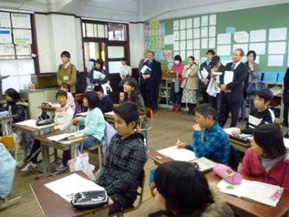 5年生の公開授業では,単元「分数を調べよう」の授業をしました。2÷3という割り切れないわり算の商の表し方を考え,分数で表すことができることを学習しました。自力解決で考えた「0.6666」や「概数に直して0.7」「分数を使って2/3」などの表し方の中から,よりよい表し方について話し合い,分数を使うよさに気付くことができました。