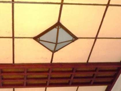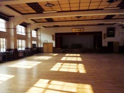 今回は,講堂を紹介します。講堂は,本館とつながっています。正面の舞台奥には,戦前,御神影が収められていた部分があります。天井には,当時としてはモダンな木目のデザインが施され,菱型の埋め込み電灯が設けられています。お天気の日には,アンティークな窓から,明るい陽光がフロアーに差し込みます。また,舞台正面の上には,額が掲げられています。この額は,昭和43年,当時の清水寺管長,大西良慶氏直筆の書で,「純和育成」と書かれています。純粋な和の精神をもって子ども達がすくすくと育つようにという意味が込められているそうです。
