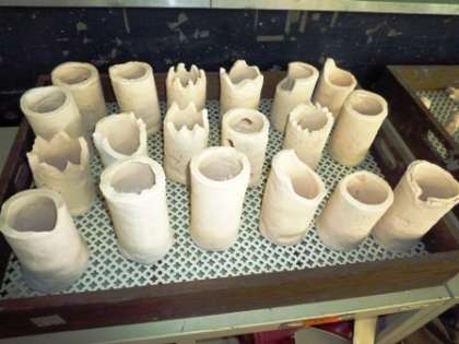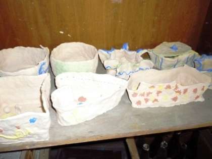 4年生は,来年の新1年生にプレゼントする作品を,5年生はペンたてを,6年生は花瓶を作りました。4年生以上の作品は,この後,色を付け,上薬をかけて本焼まで行う予定です。全校児童の作品がそろう校内図工展が,とても楽しみです。