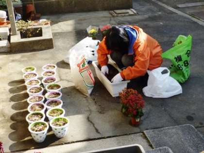 園芸委員会では,校内にある花壇やプランターの世話をしています。この前植えたプランターからは,かわいいチューリップの芽が顔を出してきています。玄関付近のプランターには,キンギョソウなどの花が咲いています。園芸委員会の児童だけでなく,教頭先生も世話をしてくださっています。