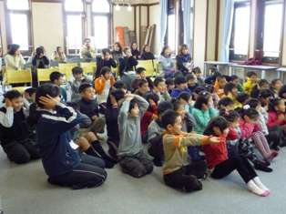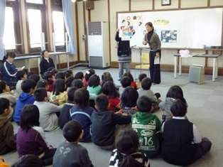 1月19日。親子人権学習会を行いました。今回は,障害のある方との関わりをテーマに学習しました。講師として,聴覚に障害のあるMさんに来ていただきました。低学年と高学年の2回に分けて,Mさんからお話を聞いたり,ゲームをしたり,質問に答えていただいたりしました。事前に,全学級で聴覚障害のある方のことや補聴器体験の学習をしていたので,みんな真剣なまなざしで話を聞いていました。質問の時間には,「いつ,補聴器をしていますか」とか「火事の時にはどうするのですか」「○○は,手話でどうするのですか」など,事前学習で疑問に思っていたことを次々と質問していました。また,今日は,保護者の方にも参観していただき,障害者の問題について一緒に学習していただきました。