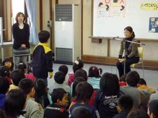写真左…話を聞く子ども達