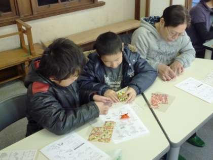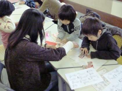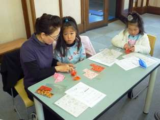 今回は,子どもと保護者合わせて25名ほどが参加しました。参加した子どもの中には,折り方の見本を見るだけで,自分ひとりで仕上げていく子どももいました。また,保護者の方に教えてもらいながら折っていく子ども,友達同士で教え合いながら折っていく子どもと,みんな頑張って作品を作っていきました。TM先生は,「折り紙は,一人で折ってはだめ。みんなで折るから楽しいのだよ」とおっしゃっていました。みんなでコミュニケーションをとりながら折る折紙のよさを教えてくださいました。