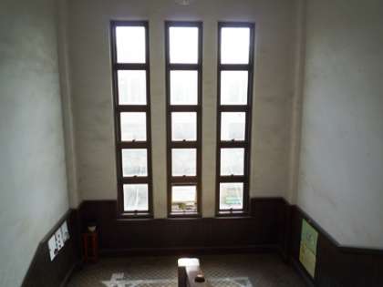 写真中…講堂前の通路の明り取り
