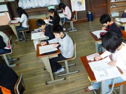 3年生以上の学年で,今週,学力定着調査をしています。国語,社会,算数,理科,音楽と,6年生は家庭科の調査を,1日に1〜2教科のペースで行っています。今年1年間に学習してきたことが,きちんと身についているかどうかが分かります。結果は,3月ごろに分かり,担任から一人一人の子どもに連絡されます。子ども達は,みんな真剣な気持ちでこのテストに取り組んでいます。