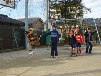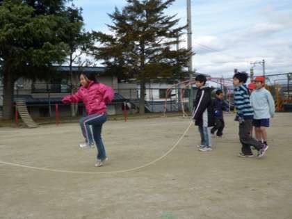 2月4日(木)。今日の中間休みに,全校縦割り遊びをしました。今回は,大縄飛び大会を行いました。5分間の間に,何人の人がとべるかを競いました。低学年は,通り抜けてもOKというルールで行いました。