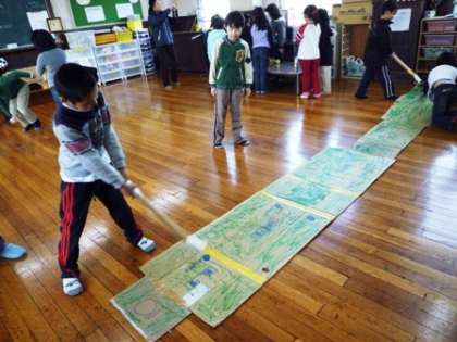 1年生に楽しんでもらおうと、アイデアを出し合い、身近な材料を使って作ったゲームは5種類。「ゴルフ」「おにのまとあて」「ボーリング」「迷路」「まとあてゲーム」
