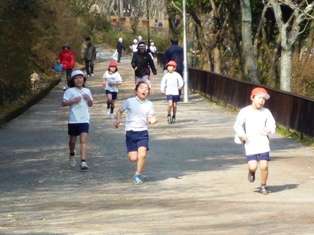 天気もよく,宝ヶ池公園の美しい自然の中,子ども達は,時間いっぱい走りました。1週走るごとに,カードにスタンプを押してもらい,さらに,もう1週と走っていきます。途中で,しんどくなって歩く子どももいましたが,少し歩くと,また走り出しました。そして,終了時間が迫ってくると,最後のひと頑張り。「あと○秒」という先生の声を聞いて,猛ダッシュ。最後に,チェックポイントで印をつけていただきレースが終わりました。1週1500mのコースを,多い子どもは4週以上走ることができました。自分の目標以上に走れた子どもや,目標まであと1歩で届かなかった子どももいましたが,どの子どもも,自分のめあてに向って頑張って走ることができました。