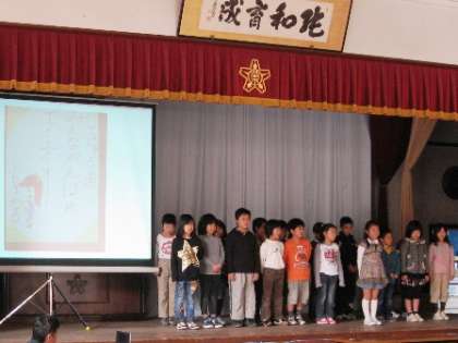 2月24日(水)。今日の清水タイムは,2年生の発表でした。自分が今がんばっていることを,短い詩に表し,それを見てもらいながら,自分の思いを話しました。「一輪車をがんばっていること」「マラソンをがんばっていること」「漢字をがんばっていること」「習い事をがんばっていること」など,全校児童の前でしっかりと話すことができました。