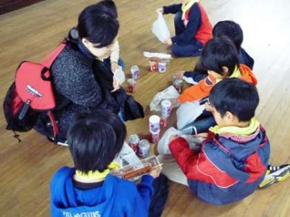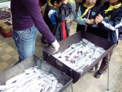 すべての活動が,あっという間に過ぎてしまいました。みんなが活動している間,PTAの役員の方々が,おいしい焼き芋と,フランクフルトを準備してくださいました。活動が終わった後,一人ずつそれをもらいました。早速,友達と集まっておいしそうにいただく子どもたちもいれば,大事そうに家に持って帰る子どももいました。半日だけの取組でしたが,楽しい時間を過ごすことができました。
