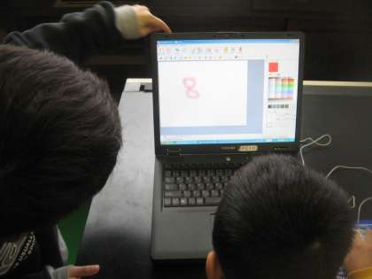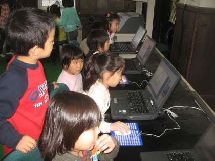 電源の入れ方から,マウスの操作,クリックの仕方・・・。みんな,予想していたよりもずっとてきぱきと手順をおぼえて,お絵かきの仕方も練習することができました。来週には,今日おぼえたことを使って,学校でお世話になった方々へのお礼の手紙を作成することにしています。