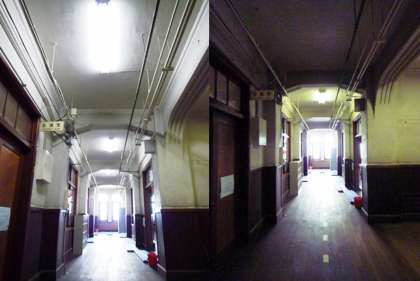 このたび,本館の廊下の照明を新しいものに交換しました。地下の給食室前,1階の職員室前,2回のふれあいサロンの前の廊下が,今までに比べて大変明るくなりました。