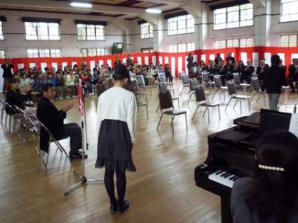 3月19日(金)。桜の蕾も膨らみ,暖かい春の陽射しが差し込む中,平成21年度の卒業式を行いました。19名の卒業生が,6年間学んだこの清水小学校を巣立ちました。登校してきた卒業生は,受付で5年生の子ども達に,胸花をつけてもらいました。そして,地域の方やPTAの役員の方をはじめ多数の来賓の方々にご臨席いただく中,厳粛な中にも暖かい雰囲気に包まれた会場に,卒業生が入場しました。