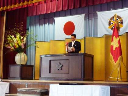 午前10時,いよいよ開式。国家と校歌を斉唱した後,最初は卒業証書の授与です。一人ひとりの卒業生に,学校長から卒業証書が手渡されました。子ども達は,緊張した面持ちながらも,堂々とした姿で証書を受け取っていました。続いて,学校長の式辞,来賓の方々の祝辞が行われました。