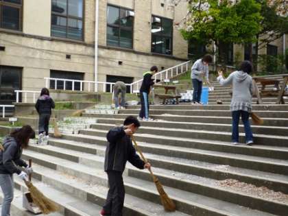 写真左…綺麗に掃除をしてくれる子ども達