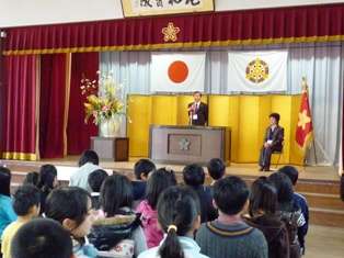 4月6日(火)。今日から,新学期がスタートしました。スタートにあたり,今年,新しく清水小学校に来ていただいた教職員の着任式を行いました。今年は,新しい給食調理員さん1名をお迎えしました。校長先生からの紹介と,調理員さんからのお話がありました。その後,全校児童を代表して,6年生のS君が「清水小学校は,清水寺や,高台寺などの有名な観光地が近くにあり,多くの人が来られます。清水小学校では,清水山へ行ったり,焼物を作ったりします。そして,全校みんなが仲良く活動しています。」と,しっかりお迎えの言葉を言ってくれました。