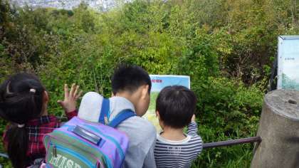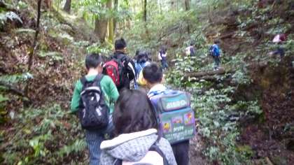 4年生と一緒に清水山に登りました。