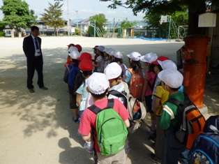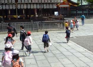 5月18日(火)。今日は,5校合同遠足に行きました。先週末は,天気予報が怪しくて心配していたけれど,今日はとてもよいお天気になりました。朝,中庭に集まって,校長先生や教頭先生に「行ってきます」の挨拶をして出発しました。行きは,動物園まで歩いて行きました。途中,円山公園で少し休憩しました。頑張って歩いたので,30分ほどで動物園に到着しました。途中で,白川小学校のお友達と一緒になりました。