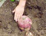 まだ、茶色のたねをかぶって 土から よこっらしょと