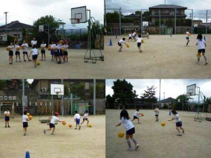 バスケットボール部は,今年は,13名の子ども達が参加しています。毎週,月曜日と水曜日の,週に2回の練習を行っています。本校は,体育館がないため,グランドでの練習になりますが,みんな元気に頑張って練習しています。他の学校と試合をすることも楽しみにしています。
