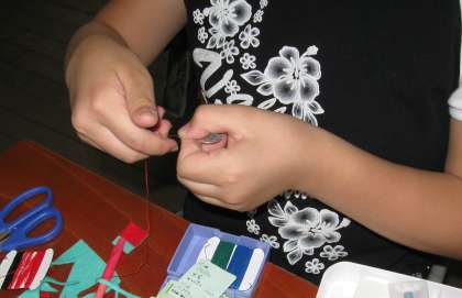 少し慣れてきたので,フェルトやボタンを使って,簡単な小物作りに挑戦しました。5年生の子ども達は,お裁縫が大好きになったようで,丁寧に一生懸命,針を動かしています。学校の授業時間だけでは足りず,自主的にお家で作品作りの続きをやってきた子どももたくさんいました。