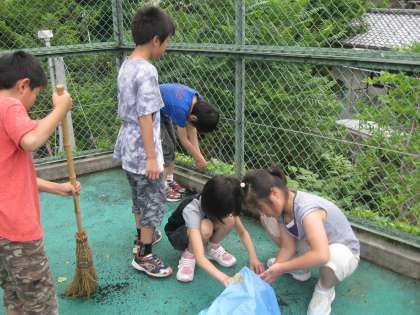 途中で雨が降り出してしまったので,プール本体のそうじ(5・6年生と教職員で行います!)は延期になりました。ザンネン!