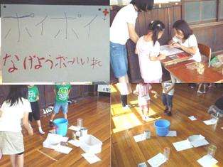 来夢室は,ぽいぽい投げようボール投げコーナーでした。点数の違う入れ物に向かって,玉を投げます。低い点数の入れ物は近くに,高い点数の入れ物は遠くに置かれています。入った点数によってもらえる景品が違います。