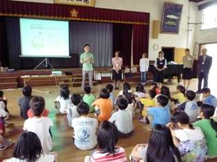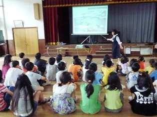 最初に,地球温暖化になるとどんな影響が出るのかなど,地球温暖化の原因や影響について学びました。次に,「1人あたりのエネルギー消費量が一番多い乗り物は?」など,4択クイズを取り入れた学習をしました。最後に,どうすれば地球温暖化を防ぐことができるか,自分たちでできることはなにかといった,エコライフの方法を教えてもらいました。今日,学んだことを生かして,自分たちでできるエコライフ生活に心がけていきたいと思います。
