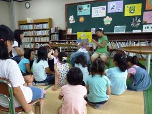 写真右…紙芝居をする委員の子供