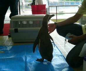 マリンランドの名物ペンギンタッチもさせてもらいました。このペンギンの名前は,「たかちゃん」で12歳,人間で言えば60歳位だそうです。一人ひとりペンギンに触らせてもらったのですが,こわごわペンギン君に触れる子どももいれば,平気で触れるこどももいました。ペンギンの肌はツルツルとして,気持ちよかったです。