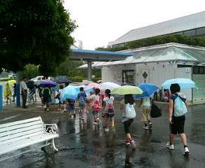 楽しかった「みさきの家」の活動も,マリンランドが最後となりました。見学と体験活動のあと,マリンランドのレストランで,昼食のカレーを食べました。お腹もすいていたせいか,とてもおいしかったです。これから,バスに乗り,学校へ向かって出発します。こちらは,相変わらず雨が降り続いていますが,子ども達は全員元気です。(午後1時)