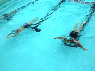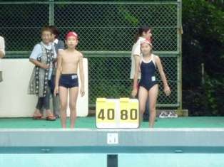 最後は,模範水泳です。クロール,平泳ぎ,背泳,バタフライの4つの泳ぎ方で,得意な子ども達が,それぞれ模範泳を披露してくれました。さすがに,みんな上手な泳ぎを見せてくれ,会場から大きな拍手が起っていました。