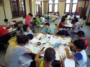 今週に入って,連日,真夏の太陽が照りつける日々が続いています。学校も,今日から夏休みに入りました。そして,今日から27日まで,夏休み恒例の「のびのび学習」がスタートしました。初日の今日は,全校で90名近くの子ども達が登校し,夏休みの宿題に取り組みました。自分のペースに合わせて,一人ひとりが課題に取り組みました。わからないところは先生に教えてもらったり,友達どうしで教えあったりしていました。およそ1時間の間,みんな一生懸命に頑張って勉強に取り組んでいました。