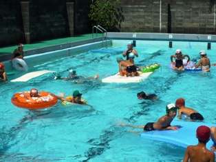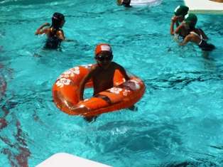 今日,プールの地域開放が行われました。PTAとおやじの会の皆さんのご協力で,毎年,夏休みに開かれている催しです。いつもの学校のプールは,先生の指導で行われるのですが,今日は,先生の指導はありません。ですから,初めから終りまで,自由に遊ぶことができます。また,いつもは持ってくることができない浮き輪やビーチボールなどを持ち込むことができ,子ども達は,ホテルのプールで遊ぶように,思う存分プールを楽しんでいました。