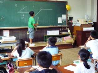 今日は,夏休み明けの最初の日でしたが,中学年や高学年では,早速,教科の勉強が始まりました。3年生では,長い休みのためにボーっとしていた頭の中を活性化させるために,百マス計算に取り組んでいました。4年生では,夏休み前に習ったことを振り返るプリントに取り組んでいました。6年生では,夏休み中に調べておいた歴史について発表し合っていました。