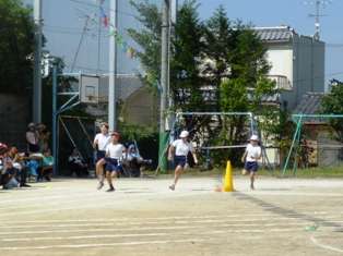 プラグラム3番・4番は,3,4年生の100m走です。3年生は初めての100m走。ゴールまで力いっぱい走り抜きました。4年生は,よりパワフルな走りをみせてくれました。