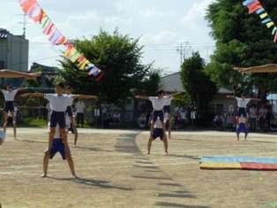 プログラム10番は,高学年の団体演技「組体操 耀る To the Future」です。清水校最後の運動会の最後の種目。一生懸命力を合わせて練習してきた演技を,たくさんの方々に見てもらい,大きな拍手をいただきました。演技のクライマックスで築き上げた塔のように空高く,みんな,未来に向けて力強く羽ばたきます。