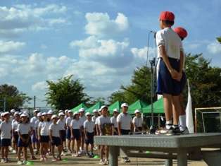 最後は,閉会式です。みんな一生懸命にがんばりました。結果は,赤組の勝利でしたが,どの種目も,接戦の連続でした。優勝旗,準優勝盾,そして,両チームに応援賞が送られて,今年の運動会が終わりました。