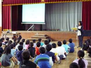 前期の最終日の今日,終業式の後,読み聞かせ会を行いました。図書館指導担当のK先生から,「あなたのたいせつなものはなに?」と問いかけられた後,スライドを使いながら「つみきのいえ」という本を読んでいただきました。主人公が,次々と昔の思い出にめぐり合っていくお話です。お話を聞きながら,自分の大切なものは何かなと考える子どもたちもいたようです。本を読む楽しさを知り,もっともっと本の好きな子どもになっていってほしいと思います。