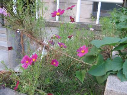 中庭では,4年生の学習に関係のある花が咲いています。(中:コスモス,右:ヒガンバナ)後期も,学習に運動に,力いっぱいがんばりたいです!