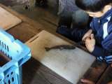 午後に行った魚つかみ。そのときにつかまえた魚を料理して食事準備です。 魚をさば...