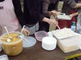 つきあがったおもちは,早速,おぜんざいやきな粉餅,おろし大根餅にしていただきまし...