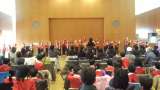 在校生と門出の言葉を交わした後,「巣立ちの歌」を歌い,会場一杯に響く祝福の拍手の...