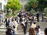 卒業生を見送るため,在校生や保護者,来賓の方々,教職員が,中庭の大階段に集合しま...