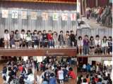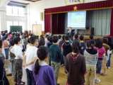 4月28日(水)。今日,今年になって初めて,全校児童が講堂に集まって,朝会と全...
