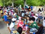 午前中のオリエンテーリングが終わり,グループで集まってお弁当を食べました。暑い中...